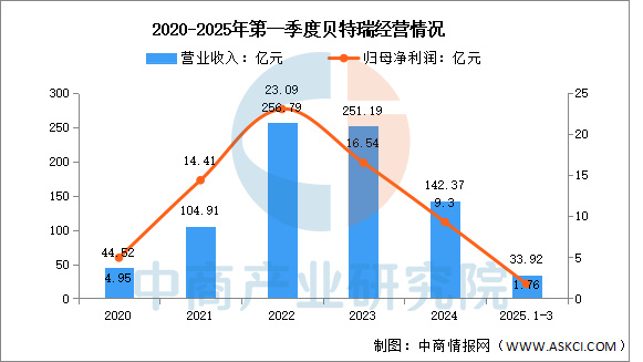 2025年第一季度实现营业收入19.4亿元,同比下降23.92%;归母净利润亏损0.33亿元。