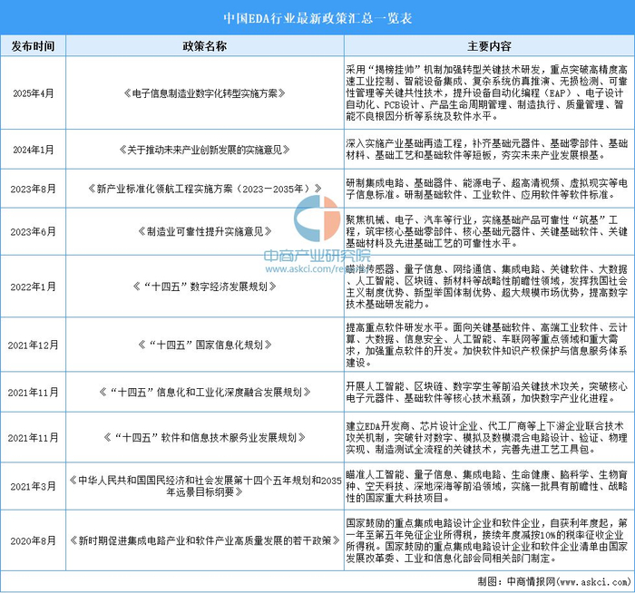 EDA不仅是推动集成电路产业自主可控发展的核心环节,更是保障国家信息安全的重要基础。近年来,我国出台了《电子信息制造业数字化转型实施方案》《新产业标准化领航工程实施方案(2023—2035年)》《“十四五”软件和信息技术服务业发展规划》等一系列政策,支持EDA行业的发展,鼓励企业加大研发投入,加速国产化替代进程。