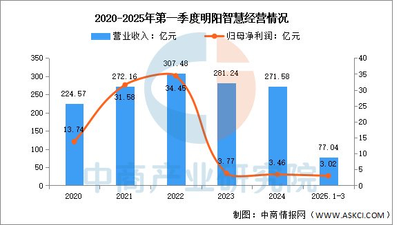 2025年第一季度实现营业收入77.04亿元,同比增长51.8%;实现归母净利润3.02亿元,同比下降0.66%。2024年主营产品包括风机及相关配件销售、电站产品销售、风电场发电,营收分别占整体的76.71%、10.28%、6.37%。