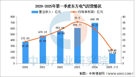 2025年第一季度实现营业收入165.48亿元,同比增长9.93%;实现归母净利润11.54亿元,同比增长27.37%。2024年主营产品包括清洁高效能源装备、可再生能源装备、新兴成长产业,营收分别占整体的40.69%、23.82%、16.00%。