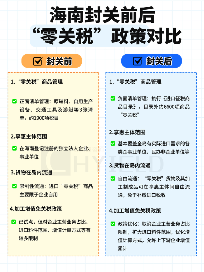 封关前后"零关税"政策核心指标对比