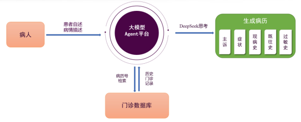 以病历生成Agent为例,AI能够像人一样获取并且理解患者信息,然后调用和操作数据库与工具,包括与医院MCP平台的接口对接,关联患者病史、检查报告甚至过敏记录,最终生成一份详实的病历。