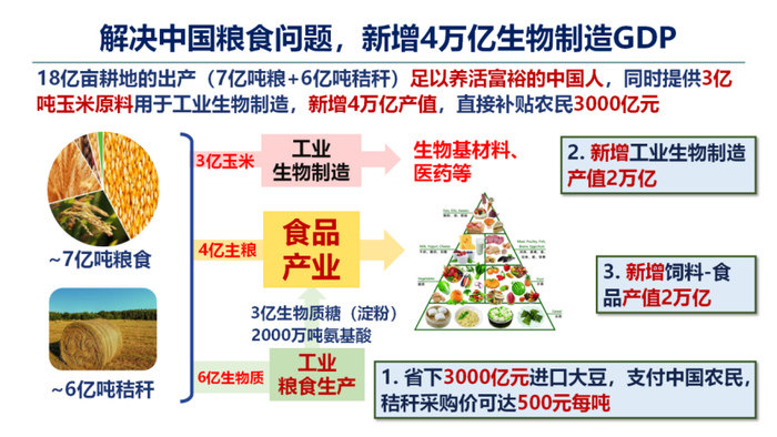 张以恒提出一个宏大的构想:拿出其中6亿吨用于生物制造,这相当于新增3.6亿吨主粮,可折算为近8亿亩优质耕地!