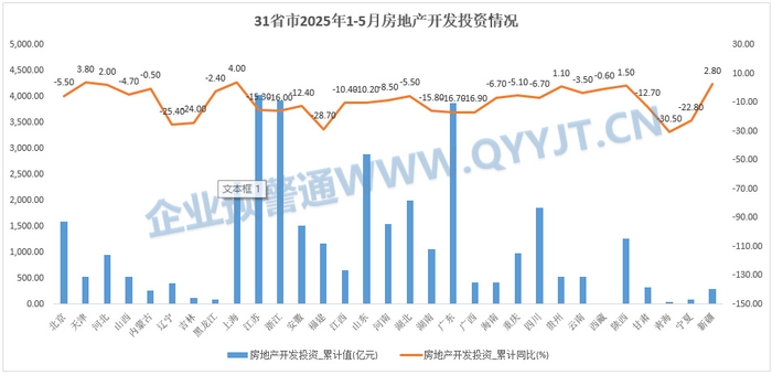分省份来看,前5月,北京、新疆、西藏、内蒙古、宁夏5个省市的固定资产投资同比增长超12%,展现出迅猛的增长势头。其中,北京凭借其强大的科技创新能力和政策引导,1-5月固定资产投资同比增长17.8%,已连续2个月的固投增速位居全国第一。而江苏、海南、广东3省的固定资产投资增速为负,广东、海南自2月以来,固定资产投资持续下降,且降幅也较上月有所扩大。