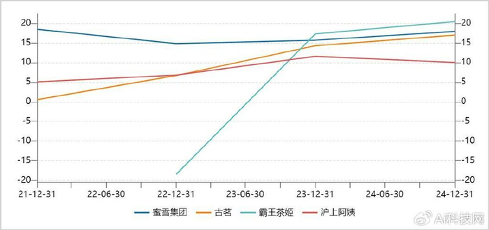 2023-2024年,茶饮行业呈现爆发式增长。霸王茶姬营收同比激增844%和167%,净利润增幅达983%和214%,成为增长最快的品牌。蜜雪冰城凭借“低价策略+万店规模”稳坐行业龙头,2025年一季度门店总数突破2.5万家,供应链收入占比超60%。然而,同一赛道内企业表现悬殊:新上市的四家茶饮公司中,两家净利润率不足5%,远低于头部企业15%-20%的水平。