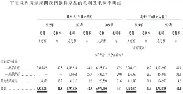 而东鹏饮料重点推广的电解质饮料“补水啦”,定位对标元气森林“外星人”,凭借500ml装3-4元的低价策略(低于“外星人”约20%)快速放量,毛利率显著低于能量饮料(2025上半年能量饮料毛利率49.9%、“补水啦”毛利率31.1%),且依赖现有渠道铺货,缺乏差异化竞争力。其他新品市场份额更是远低于前两者。