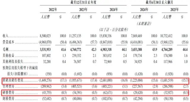 回溯来看,这种增长是营销驱动。2022-2024年及2025年上半年,公司经销及销售费用分别为14.49亿元、19.56亿元、26.81亿元、16.82亿元,销售费用快速增长。