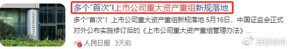 1.并购重组大松绑证监会发布的关于修改《上市公司重大资产重组管理办法》的决定,进一步深化上市公司并购重组市场改革,提出四个“首次”直接松绑并购重组,这次新规堪称史诗级改革!