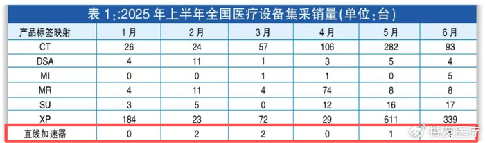 要知道,今年上半年全国直线加速器的集采销量才6台。