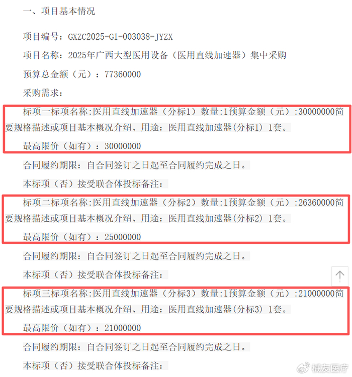 医院要采购三台医用直线加速器,也就是我们常说的放疗设备,总预算7736万元。单看这个数字,在动辄上亿的大型设备采购中不算特别惊人,但结合背景来看,意义就不同寻常了。