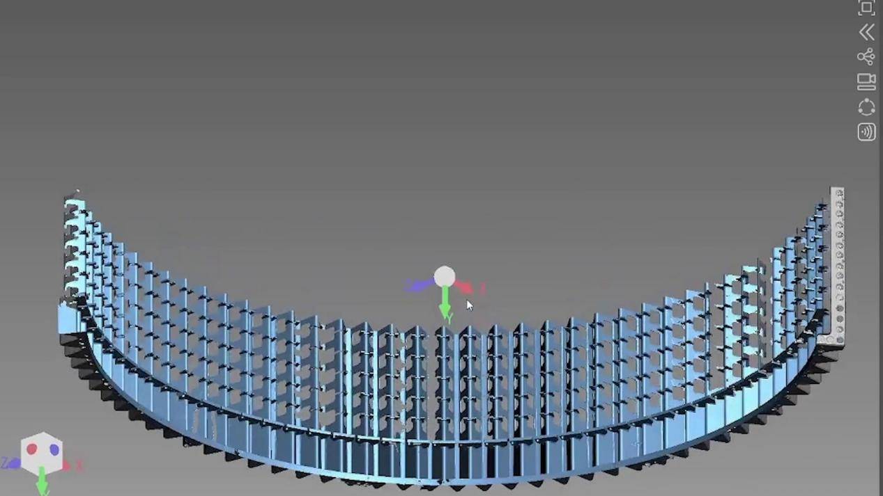 03 采用3D扫描仪进行尺寸及形变数据采集,TrackScan-Sharp激光三维扫描仪单站测量范围更广,较普通三维扫描仪转站次数更少,减少了后续数据对齐和拼接次数,3小时以内即可完整获取定子机座尺寸及缺陷形变处的高精度三维数据。